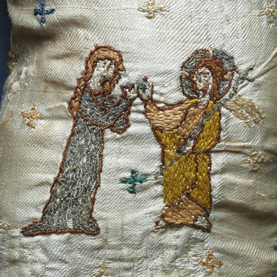 Christ hands Christina a ring The embroidered figures on the silk gloves from the shrine of Blessed Christina von Stommeln are the oldest representations of Christina